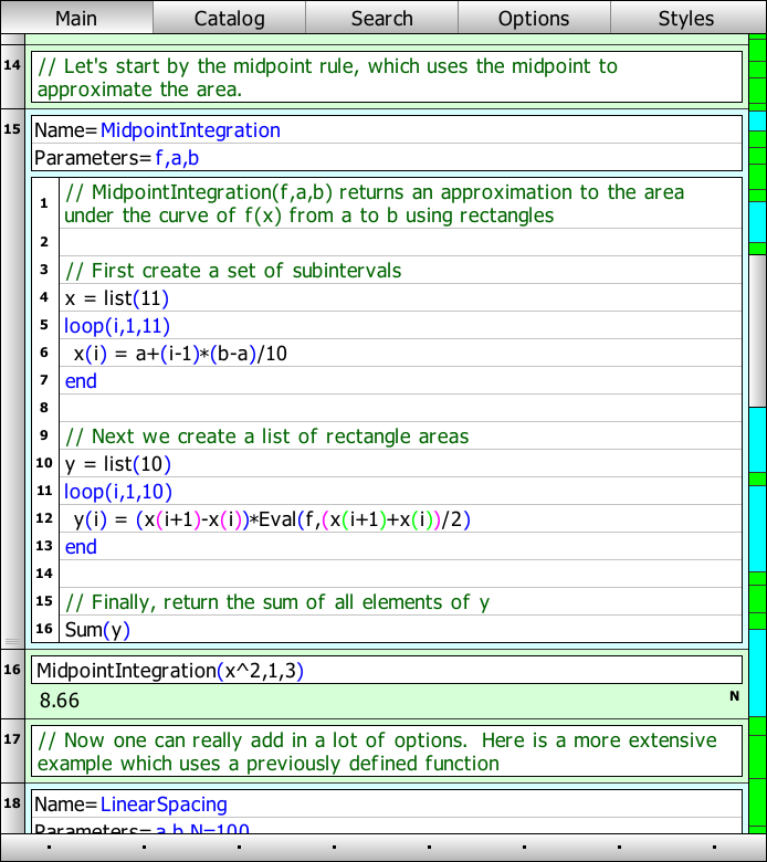 This tutorial shows how to input scripts as parameters to other scripts. This is done by coding up two numerical integration algorithms. The slider control is also introduced.