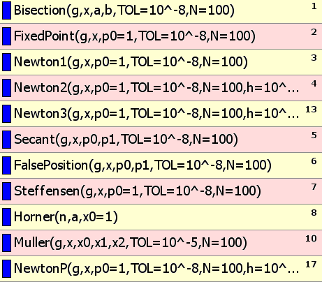 A collection of numerical algorithms for finding solutions of the form f(x) = 0. From Numerical Analysis, Burden and Faires, 7th Edition.