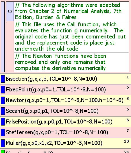 Most of the routines from Roots.st, only now instead of having to have an analytic function f(x), f can be a one-variable user-defined script.