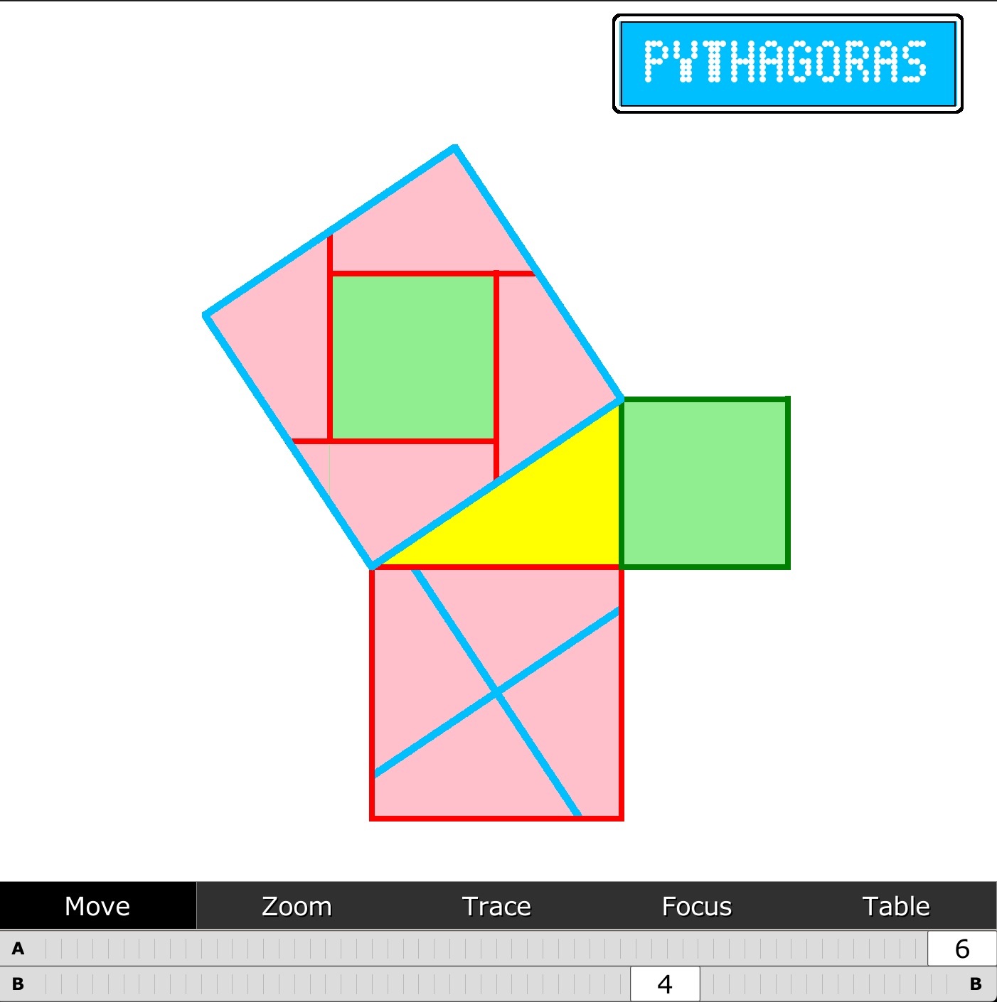 Here an application to understand Pythagoras relation C^2=A^2+B^2 with animation.