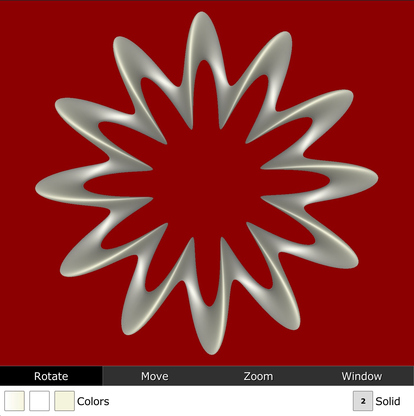 ParametricPlot3D(x,y,z,backgroundColor=darkRed,axis=0)