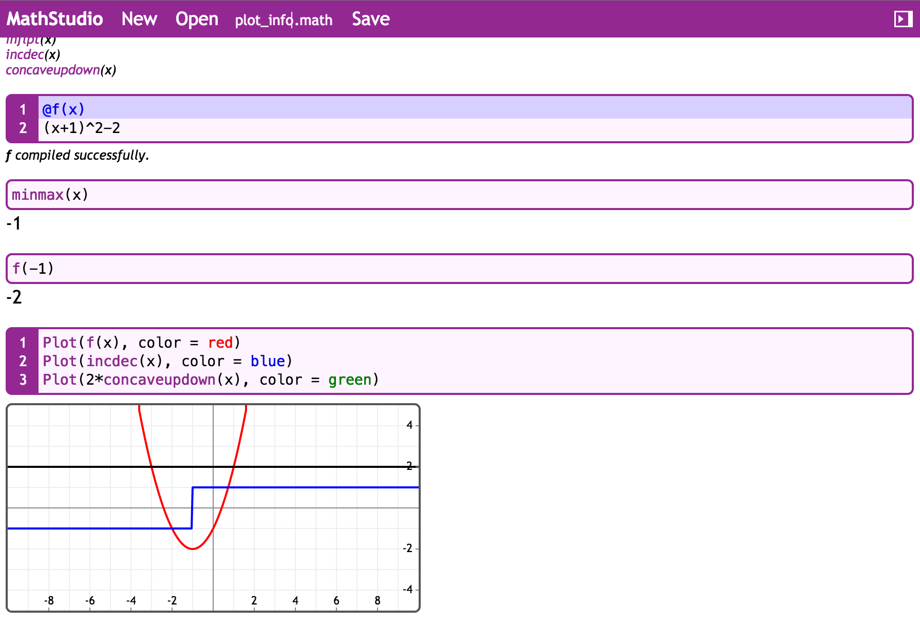 Example function for MathStudio web: